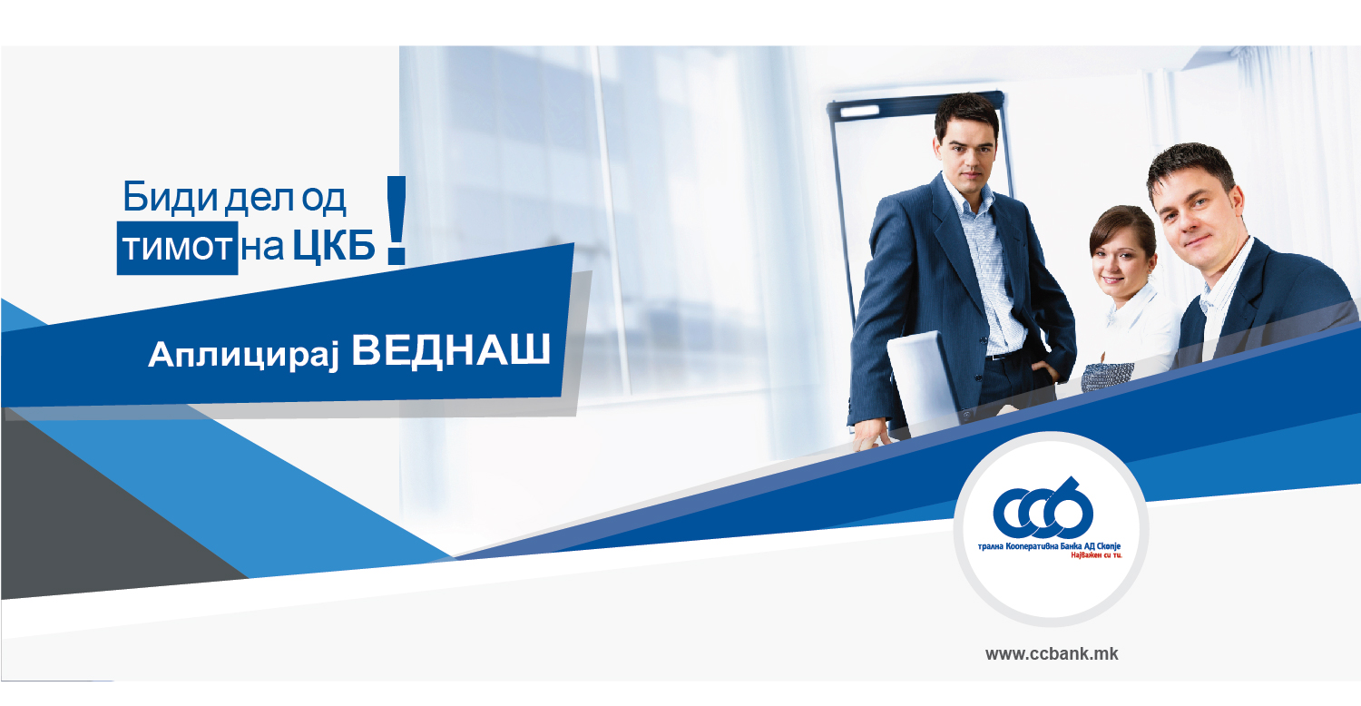 Централна кооперативна банка АД Скопје, дел од групацијата ЦКБ Груп ЕАД има потреба од вработување на квалитетни и високо мотивирани лица заинтересирани за работа за работно место Соработник за клиентска услуга и тоа: