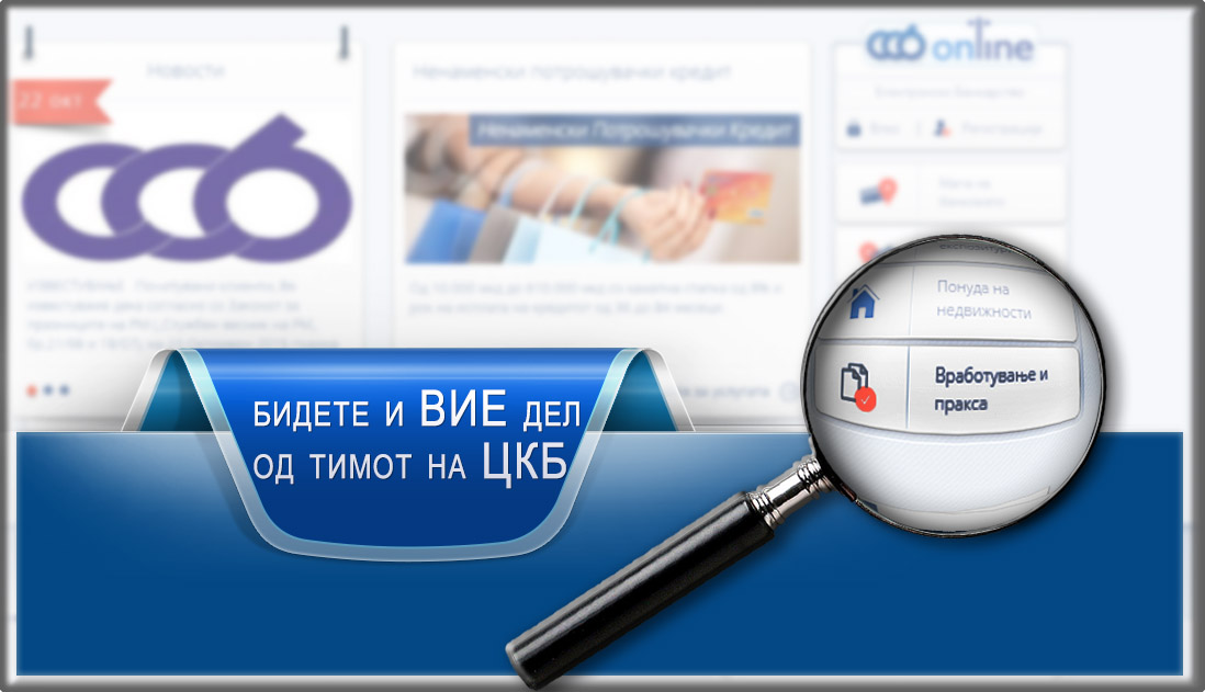 Доколку сакате да станете дел од нашиот успешен тим, Ве молиме да ја пополните online апликацијата на нашата Интернет страница www.ccbank.mk во делот „Вработување и пракса“ или пратете Ваше CV и пропратно писмо на следниов mail: hr@ccbank.mk