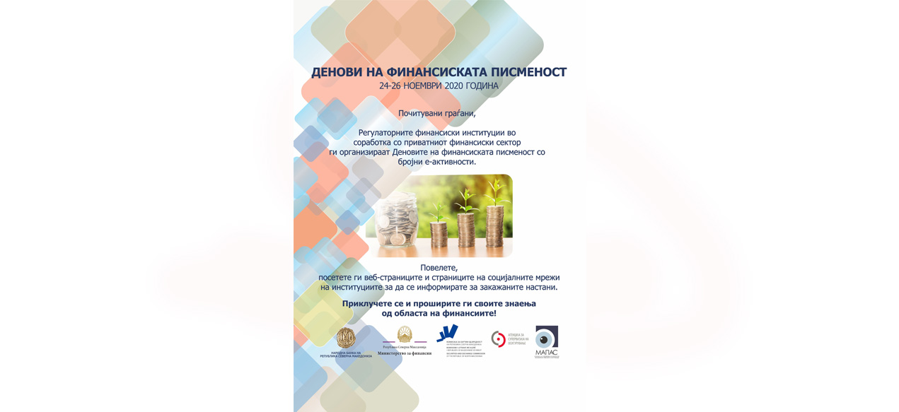 Народната банка, како еден од организаторите и учесник на Деновите на финансиската писменост, упатува јавен повик до сите заинтересирани граѓани за присуство на едукативни презентации преку видеоконференциска врска на следниве теми: