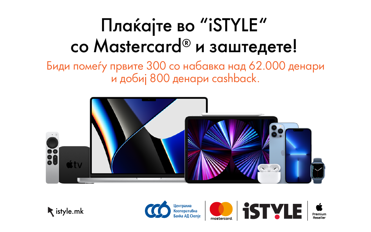 Вашата Mastercard® кредитна или дебитна картичка од ЦКБ ви овозможува брзи, едноставни и безбедни трансакции секој ден. Каде и да сте, можете да плаќате само со допир, доближувајќи се до најдобрите технолошки решенија - оние во iSTYLE продавниците.
