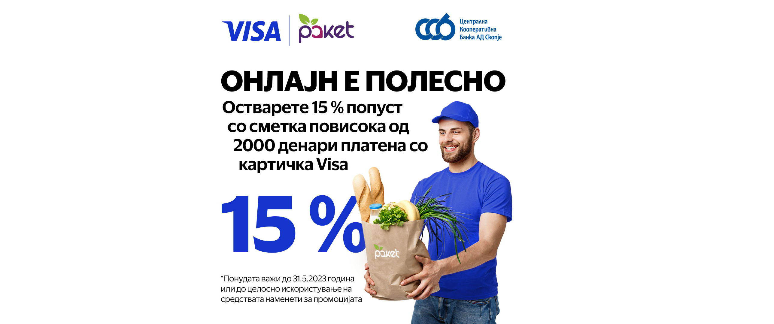 Нарачај од Paket.mk, плати со твојата зачувана ЦКБ Visa картичка и добиј 15% попуст на нарачка поголема од 2.000 мкд.